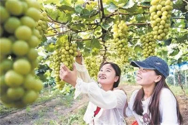 要说今年夏天到秋天的 “顶流” 水果,阳光玫瑰葡萄绝对占有一席之地。在野树林百菇园的葡萄园内,一串串饱满圆润的阳光玫瑰挂满枝头,青绿色的果皮泛着淡淡的光泽,像一串串精心雕琢的绿宝石,让人一眼就心生欢喜。无论是带着孩子体验亲手采摘的乐趣,看着他们踮起脚尖、小心翼翼摘下果实的认真模样;还是和朋友、爱人并肩穿梭在葡萄架下,分享这份新鲜的甜蜜,都是国庆假期里最惬意的瞬间。摘下的葡萄还能装成礼盒,带着园区的自然气息,成为走亲访友的 “心意好礼”。