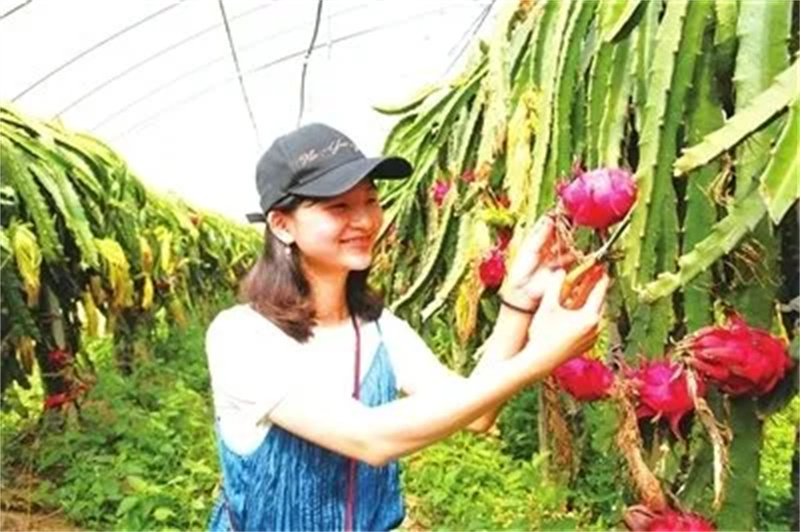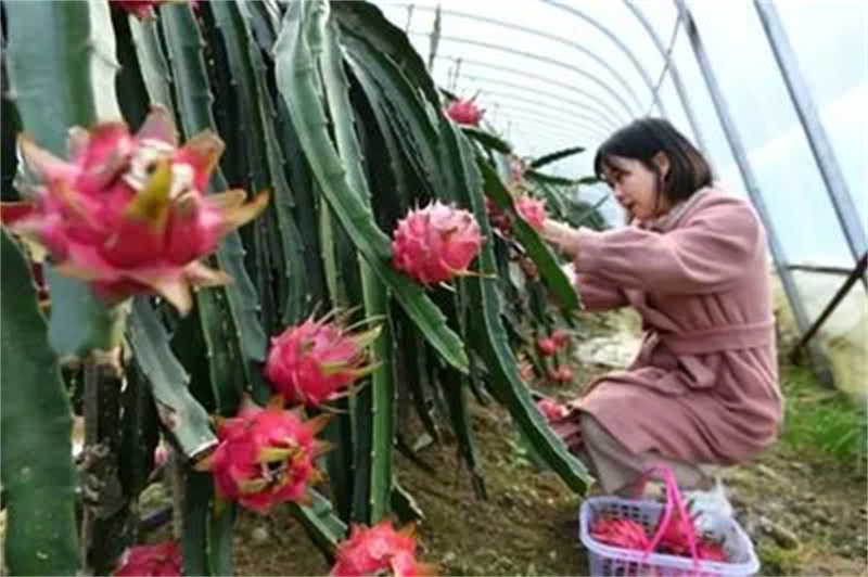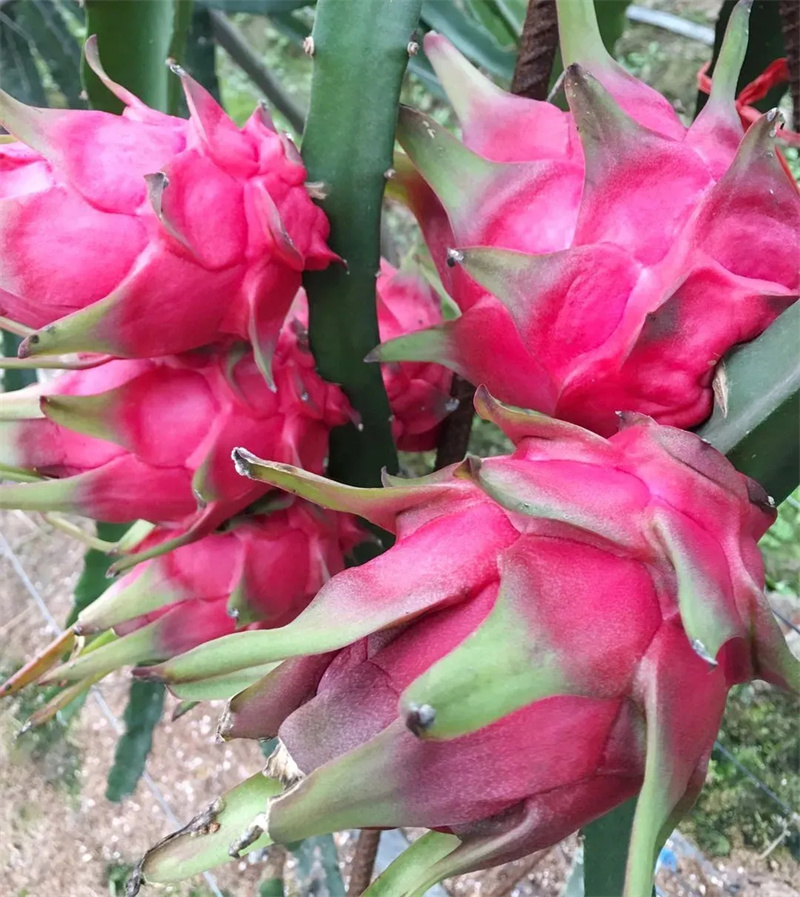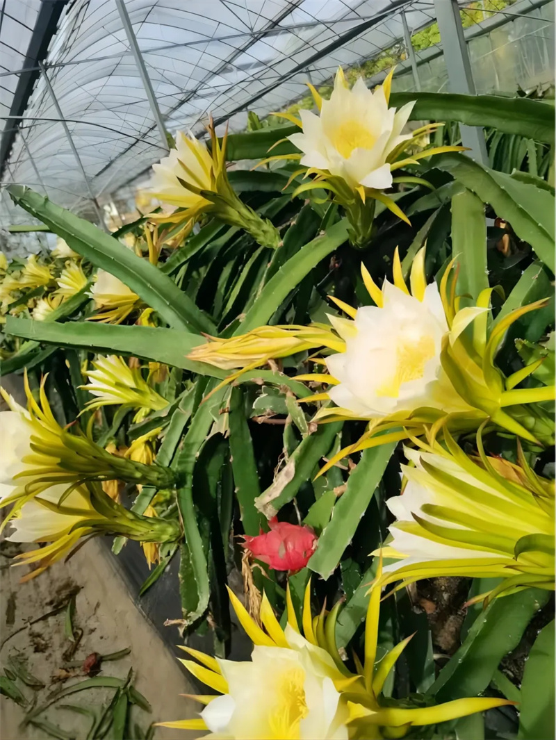 如果说阳光玫瑰是清新的 “绿宝石”,那园区里的红心火龙果就是热情的 “小灯笼”。走进火龙果种植大棚,眼前的景象十分特别 —— 大片肉质茎干像仙人掌一样舒展,一朵朵硕大的火龙果花曾在夜间绽放,而在茎干顶端,一个个红彤彤的火龙果垂挂着,表皮布满绿色的小尖刺,像一个个可爱的小灯笼,透着满满的热带风情。采摘火龙果也是一场有趣的体验,小朋友们可以在家长的指导下亲手采摘,感受 “收获” 的成就感。而且红心火龙果富含花青素和膳食纤维,好吃又健康,带回家做成果汁、沙拉,都是不错的选择。