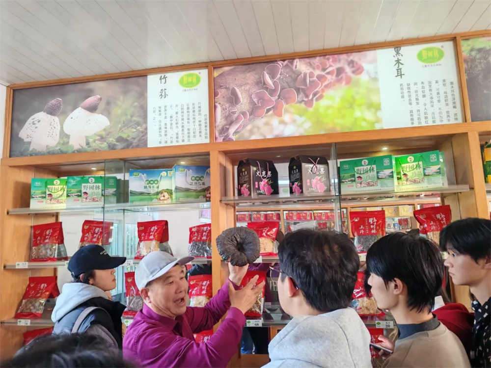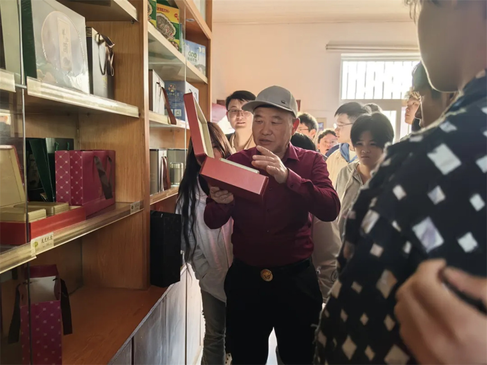在许忠董事长的引领下,师生一行先后参观了企业的产品展示中心、智能化生产车间以及菌菇文化体验馆。在产品展厅,大家近距离观摩了羊肚菌、灵芝、大球盖菇、金虫草等多种珍稀食用菌产品,了解了“野树林”品牌从研发、生产到销售的全产业链布局,以及其作为“中国驰名商标”和“绿色食品”的品牌影响力。