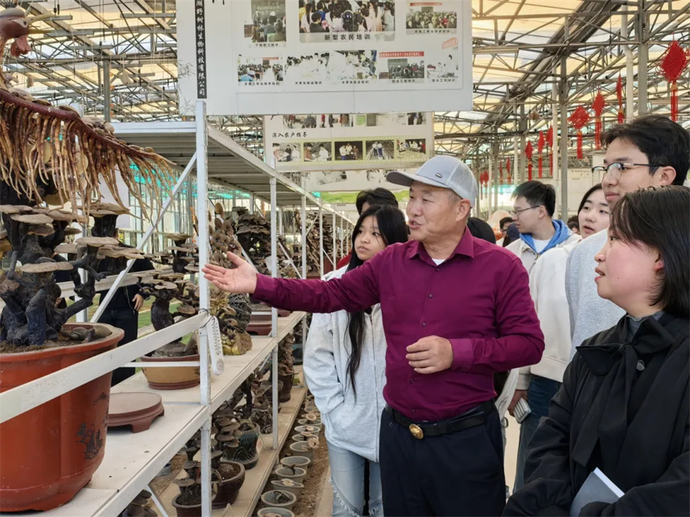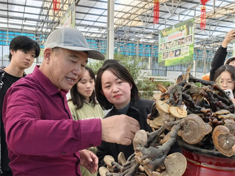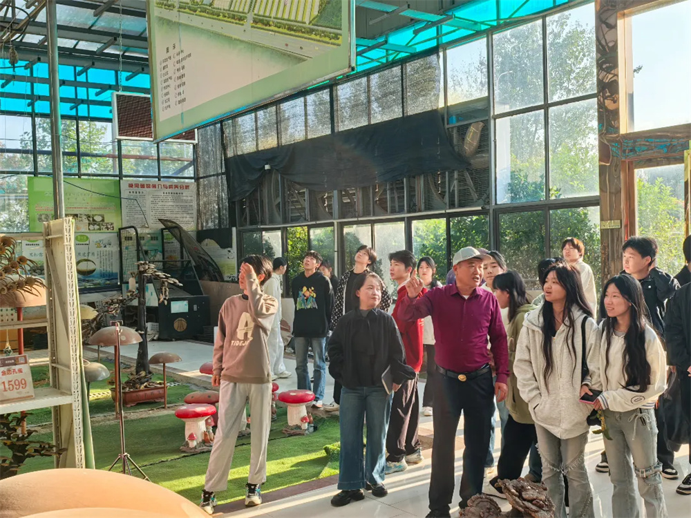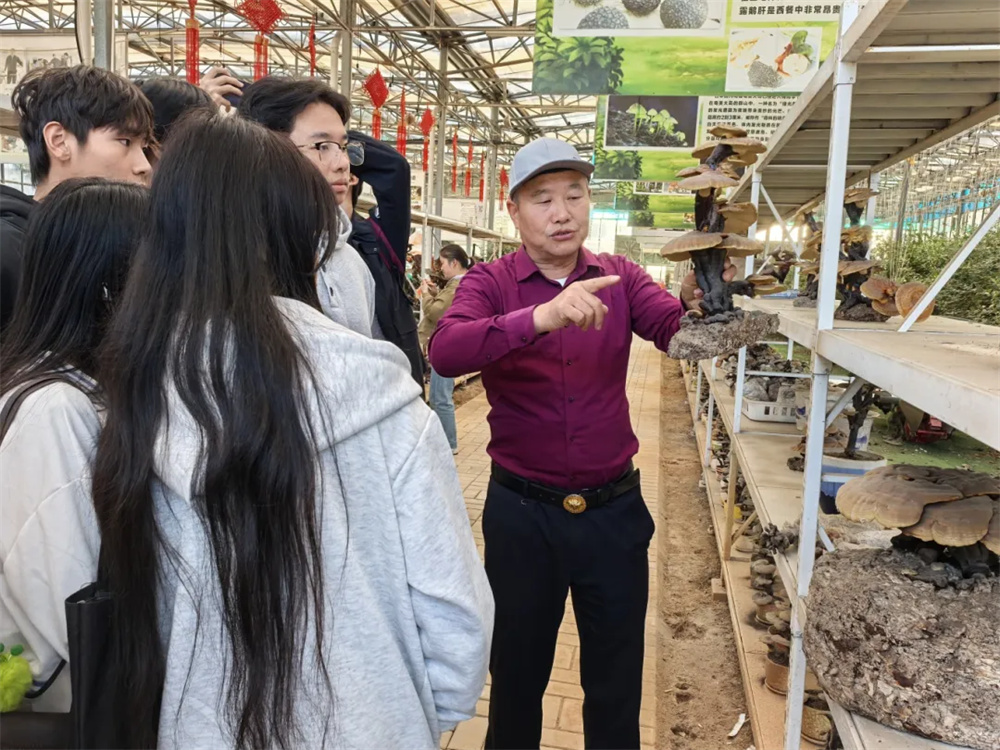 在菌菇文化体验馆,丰富的菌类标本、灵芝种植区以及图文并茂的菌菇知识展板,为大家上了一堂生动的“菌菇科普课”。许多同学驻足灵芝培育区,详细了解其生长习性与药用价值,感受到小小菌菇背后的大产业与文化内涵。